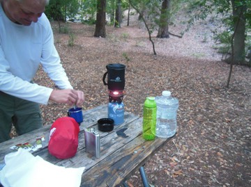 Making coffee for breakfast (The Tequila flask was empty)