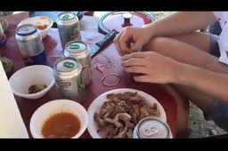 My wife is actually from a small village just north of Phan Rang. We spent some time shopping in Phan Rang, visiting the beach there and eating at a great little open street restaurant that night. We also took a boat ride up the coast and had a freash seafood lunch on a floating restaurant. The best food, however, was at a beach picnic our nephews took us on. It was a rocky beach, but a great viewing area. The guys went diving in the ocean and collected a big basket of sea snails, clams etc, etc. Cooked over a fire with a spicy diping sauce, washed down by cold beer, along with some beef that was B-B-Q ed- it was great. We ran into some other interesting folks there including a Vietnamese wedding picture taking party. They wanted pictures with all of us, but the bride especially wanted a picture with me. I thought that was slightly unusual, until it happened over and over at different places with many different young girls I finally determined it was because I was old, had a Budda belly, and was thought to be totally harmless.